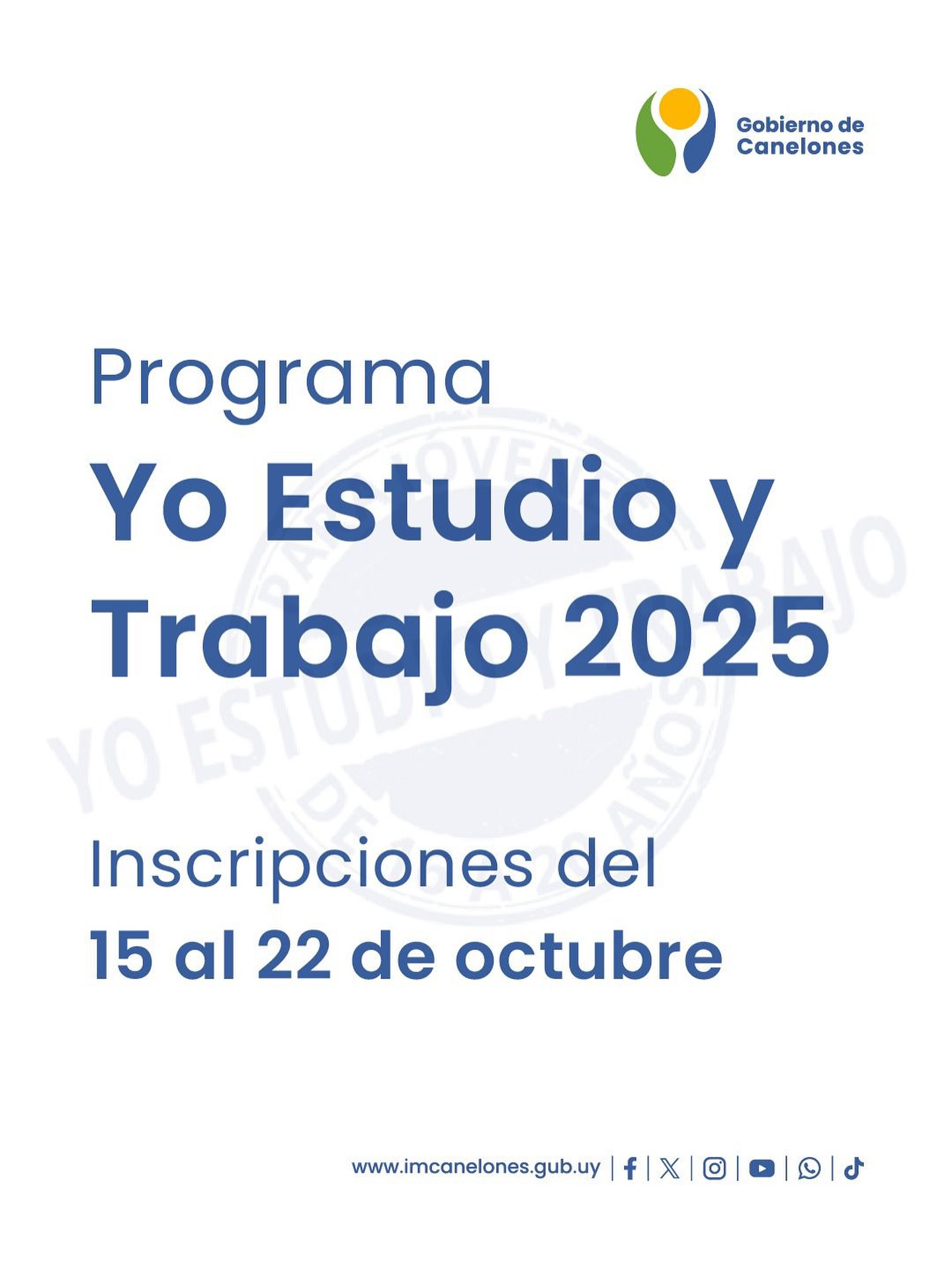 El Gobierno de Canelones otorgará 20 cupos para que más jóvenes puedan sumarse a trabajar en los municipios canarios gracias al programa Yo Estudio y Trabajo en su 14ª edición, una iniciativa interinstitucional que brinda a jóvenes estudiantes de entre 16 y 20 años su primera experiencia laboral formal, mientras continúan sus estudios.