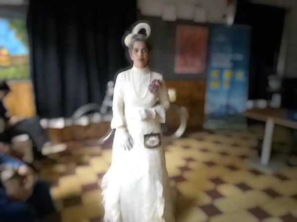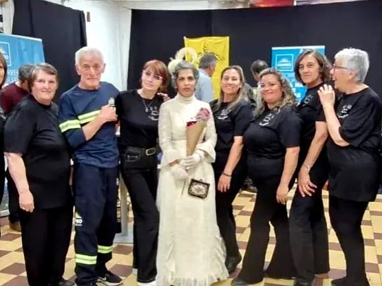 1. La Jefa Departamental de Canelones Ely Rodríguez vestida con un vestido similar al de la Srta. María Perucchi, la primera jefa de Los Cerrillos.