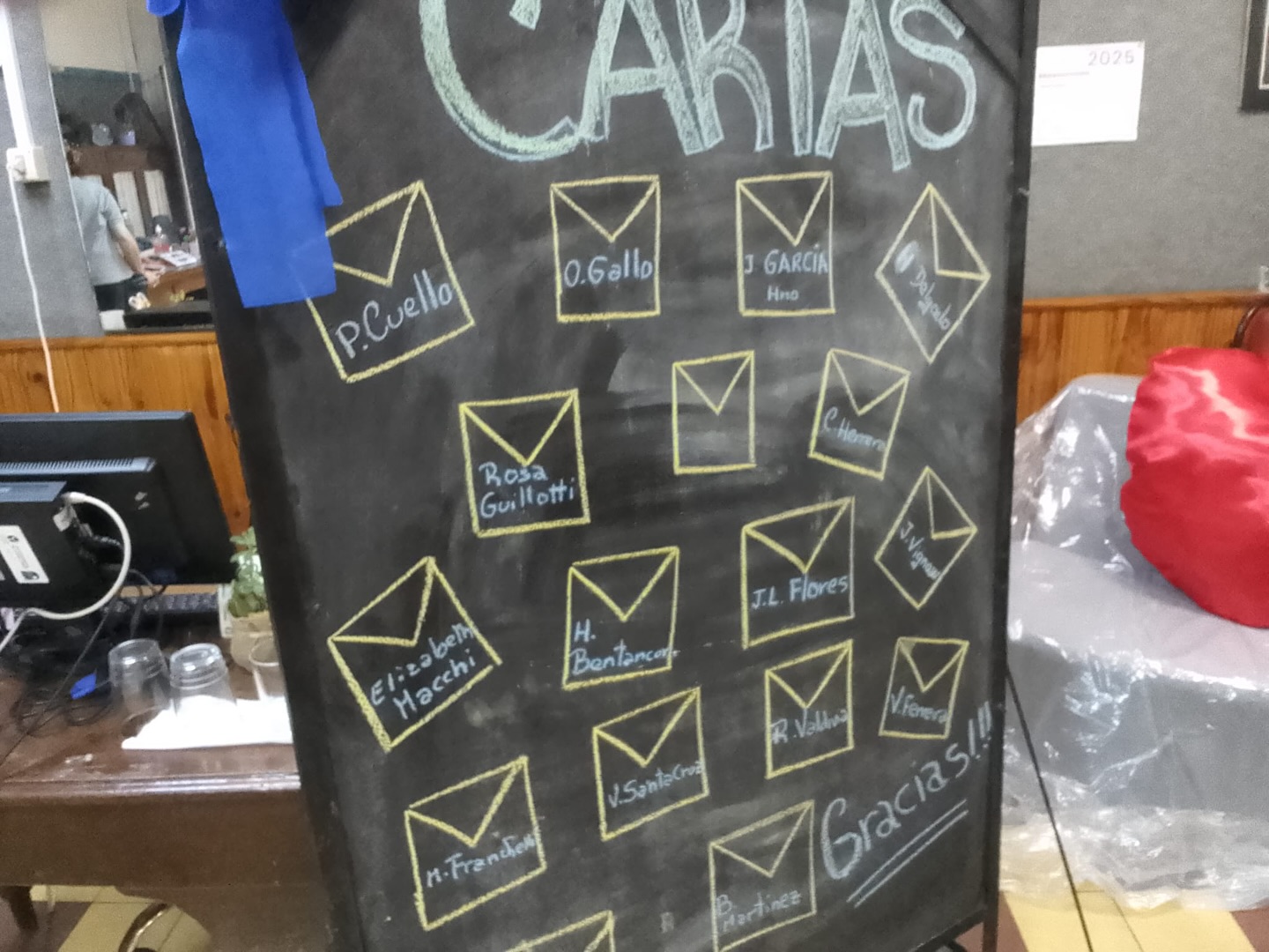 2. En el Pizarrón los nombres de los carteros que trabajaron en el pueblo y en los últimos tiempos la tercerización del servicio.