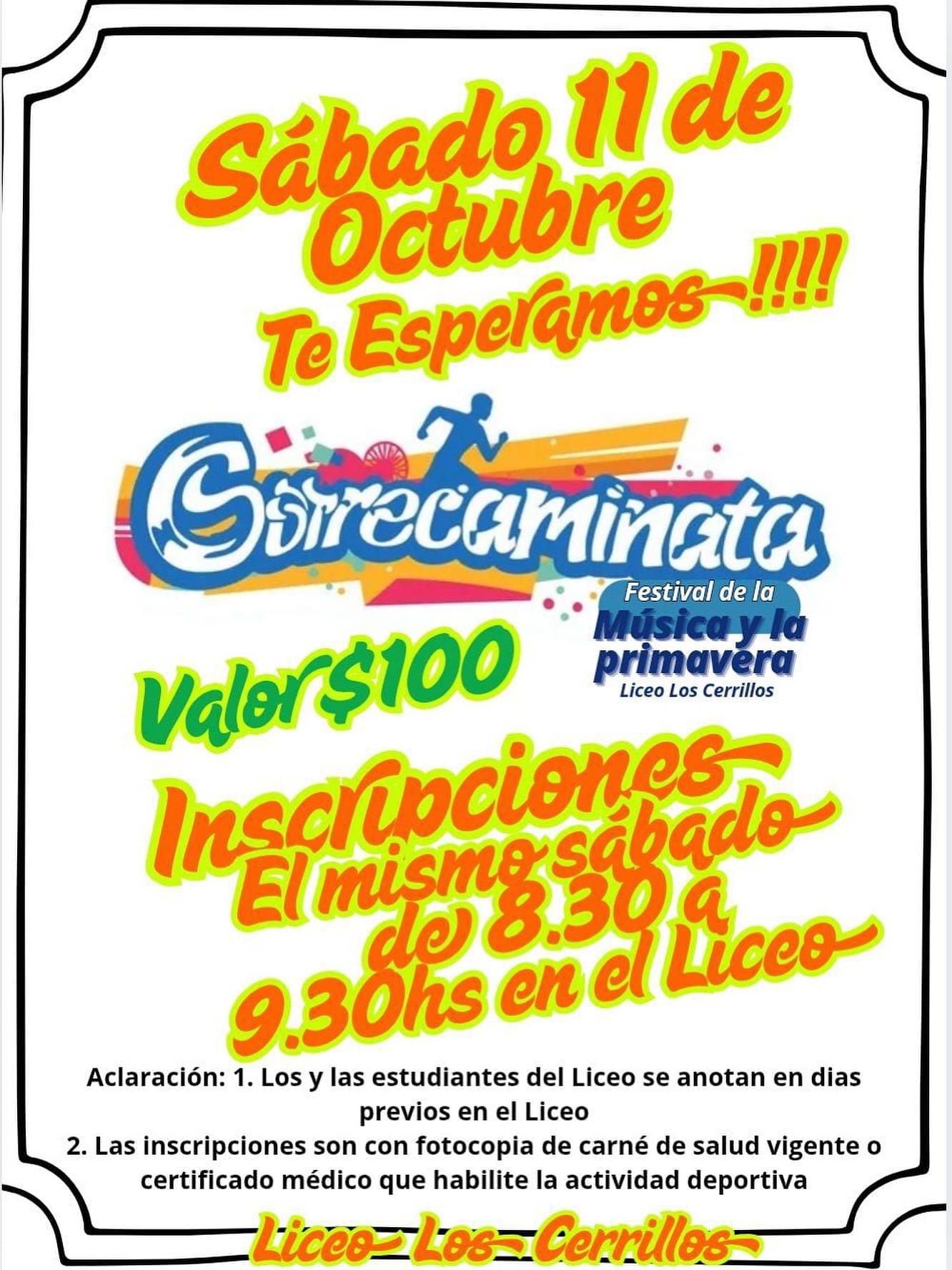 Sábado 11 de octubre Correcaminata Liceo Los Cerrillos